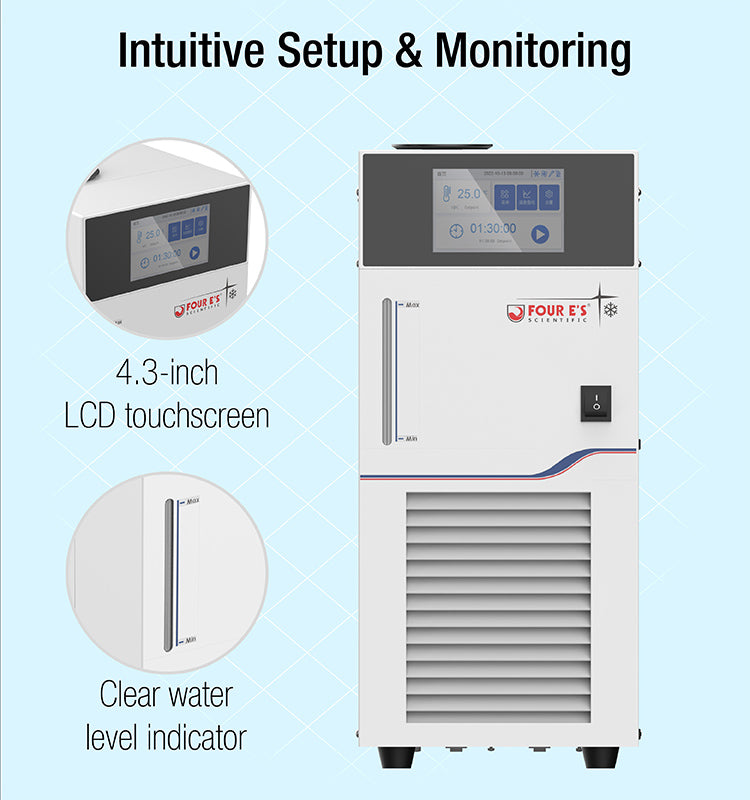 The unit features a stainless steel water bath with an easily visible water level indicator for convenient monitoring during operation. A 4.3-inch LCD touchscreen enables intuitive setting adjustments and real-time monitoring, ensuring simple and efficient operation.